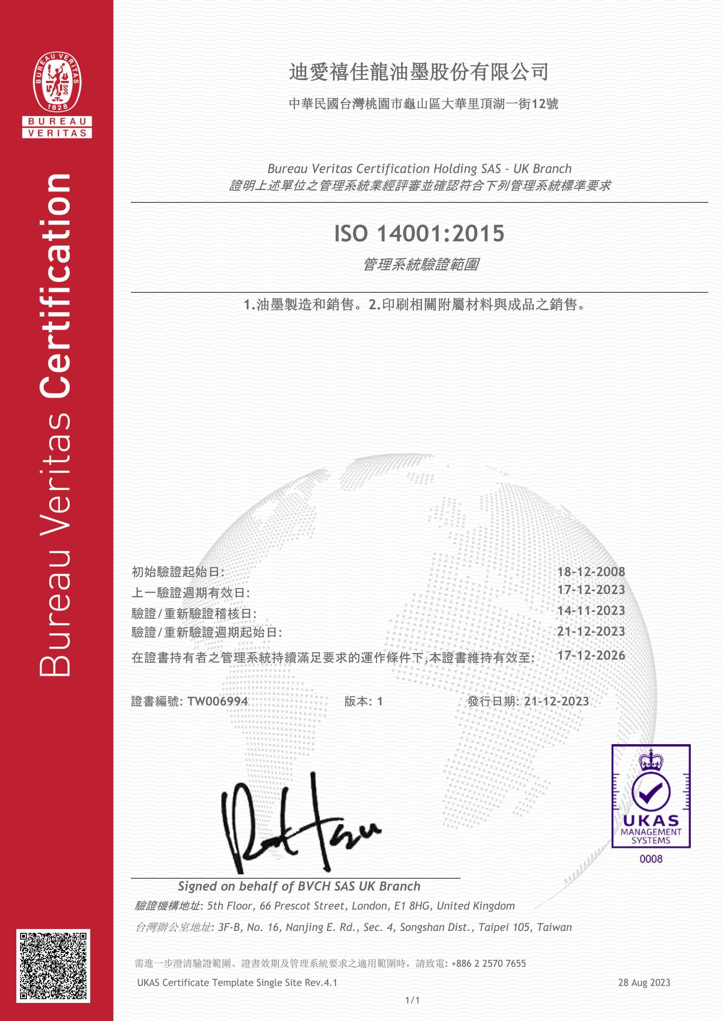 迪愛禧佳龍通過ISO 14064-1:2018組織溫室氣體盤查